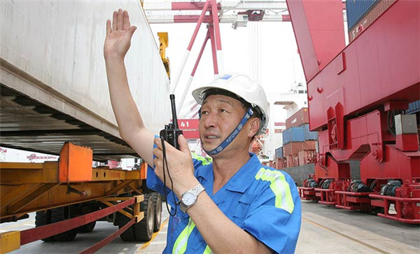 央視網(wǎng)消息:“我站在碼頭就高興,甚至有點(diǎn)激動(dòng),四十多年了感情在這兒。”今年69歲的許振超,1974年進(jìn)入青島港,先后干過裝卸工、電工和橋吊司機(jī)等崗位,現(xiàn)在是青島前灣集裝箱碼頭有限公司固機(jī)高級(jí)經(jīng)理。他說,橋吊司機(jī)的工作是在四五十米的高空,僅憑左、右手控制操縱桿,指揮吊具升降、前進(jìn)和后退,在“巨無霸”的集裝箱里“穿針引線”。