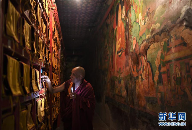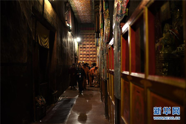 布達(dá)拉宮管理處的工作人員在殿堂值守(2018年11月15日攝)。 新華社記者 普布扎西 攝