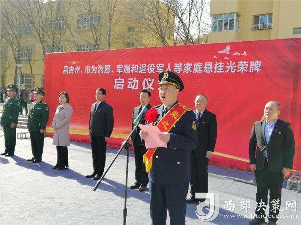 3月28日上午 ,昌吉州、市為烈屬、軍屬和退役軍人等家庭集中懸掛光榮牌啟動(dòng)儀式在昌吉北京南路街道油運(yùn)基地社區(qū)小游園舉行。 昌吉州、市領(lǐng)導(dǎo)、退役軍人事務(wù)局干部、現(xiàn)役軍人代表、烈屬、軍屬、退役軍人代表、各社區(qū)書記、訪惠聚工作隊(duì)隊(duì)長、雙擁干事共計(jì)300余人參加啟動(dòng)儀式。