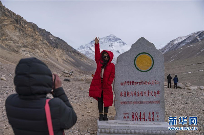 標(biāo)有“海拔8844.43米”的珠峰高程測(cè)量紀(jì)念碑已被移至絨布寺一帶,游客可前往合影。湖南游客唐鳳明告訴記者:“從這里觀賞珠峰非常壯觀,超乎想象。”