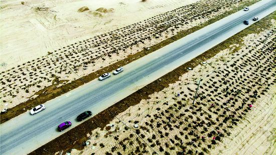 在南疆,長長的人工荒漠林帶和治沙網(wǎng)格相結(jié)合,護(hù)佑著縱貫塔克拉瑪干沙漠的公路,以及因選擇走沙漠公路而省了數(shù)百乃至上千公里路程的旅人。