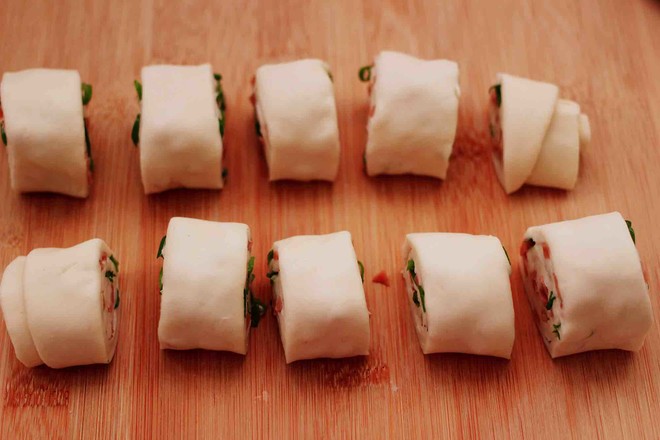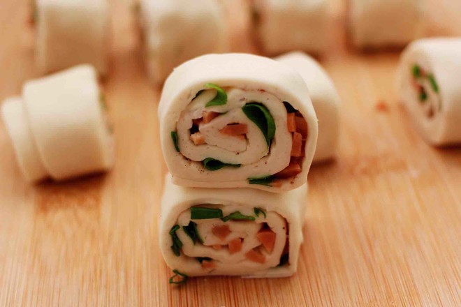 13.從面皮的一斷開始卷起來(lái),一直卷到底。
