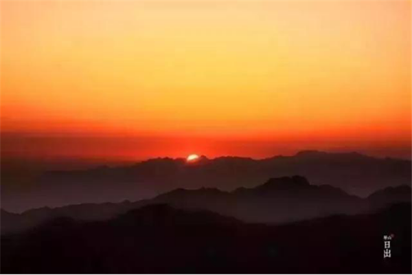 是時(shí),但見夜幕自東方悄然隱退,晨曦初露,漸漸霞光瑰麗,云源奔涌。瞬間,一輪火球噴薄而出,繼而光芒四射,氣象萬千,整個(gè)世界大放光明,游人身心為之一振。待云霧散盡,蒼松翠柏,則更加清麗悅目,美妙神奇。故而,游名山者必登華山,登華山者必觀日。華山日出亦被列為華山自然風(fēng)光中的重要景觀之一。