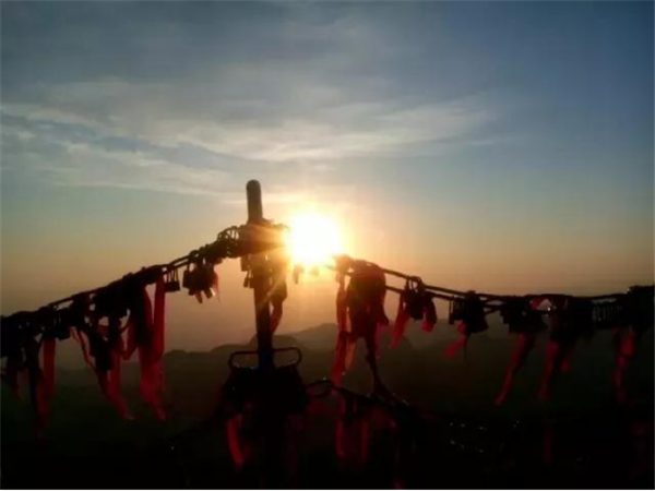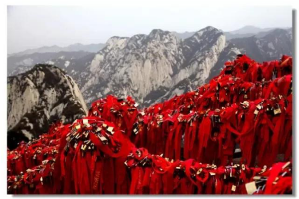 華山是一座愛情的殿堂,華山上的愛情故事悲烈、凄美而感人。我們?cè)?jīng)為世界上許許多多的愛情故事所感動(dòng)。其實(shí),發(fā)生在華山上的愛情故事一樣讓人的心情無法平靜。眾所周知的神話傳說《寶蓮燈》中,三圣母為了愛情,被二郎神巨石壓在華山頂上;弄玉為了愛情,逃離安逸的生活,與蕭史雙雙來到華山,琴瑟合鳴;漢臣王咸不畏艱險(xiǎn),到華山尋找賢妻南陽公主等等這些愛情故事,感天動(dòng)地,流傳不衰,不知讓多少人為之贊嘆。也許是讓華山上這些動(dòng)人的愛情故事所感染,不知從什么時(shí)候開始,在代表著堅(jiān)實(shí)連接的一串串鐵鏈上,游人掛上了閃閃的金鎖,把矢志不渝的愛情鎖在華山上,在華山的見證下,祝愿自己的愛情如同華山一樣永遠(yuǎn)不會(huì)改變。
