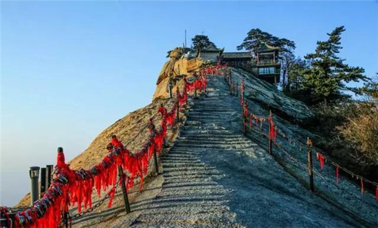 華山山體倚天拔地,四面如削,更有千尺幢、百尺峽、蒼龍嶺、鷂子翻身、長空棧道等十分險峻之地,被譽為“奇險天下第一山”。
