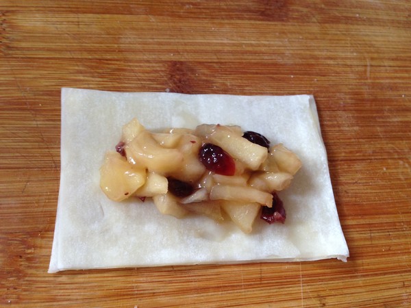 蘋果1個 餛飩皮30張 蔓越莓干20克 黃油(餡料)8克