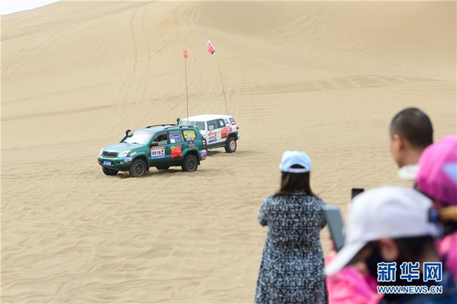 五一長(zhǎng)假期間,新疆鄯善縣舉行庫(kù)木塔格沙漠T2沙漠全國(guó)挑戰(zhàn)賽,吸引眾多游客前來(lái)觀看(5月2日攝)。新華社發(fā)(丁磊攝)