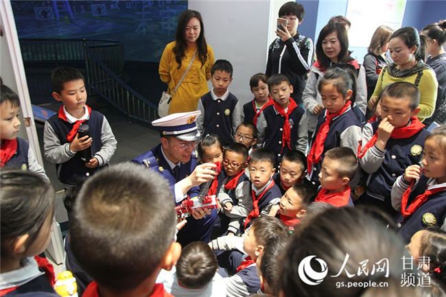 甘肅省森林消防總隊(duì)指戰(zhàn)員向?qū)W生普及應(yīng)急管理知識(shí)。(甘肅省森林消防總隊(duì)政治部供圖)