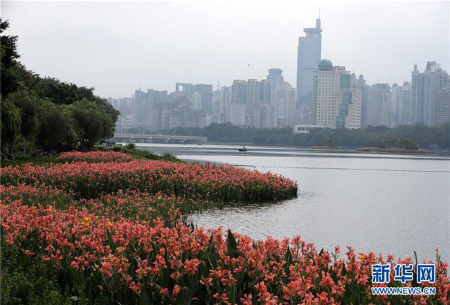 這是廣西南寧市南湖沿岸風景(5月15日攝)。