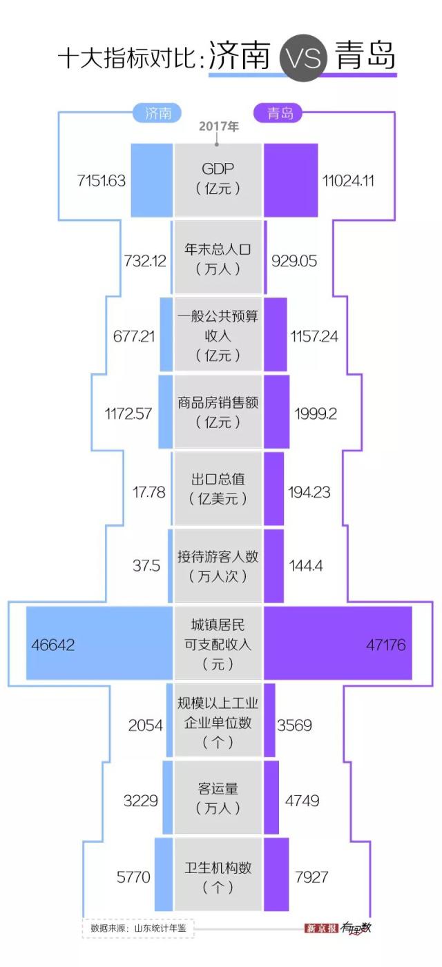 在全國范圍內(nèi)有 15 個副省級城市,濟南是其中 10 個省會城市之一,而青島是其中 5 個計劃單列市之一。所以,在區(qū)域的引領(lǐng)和帶頭作用上,山東省的這兩個城市是被國家寄予同樣厚望的。