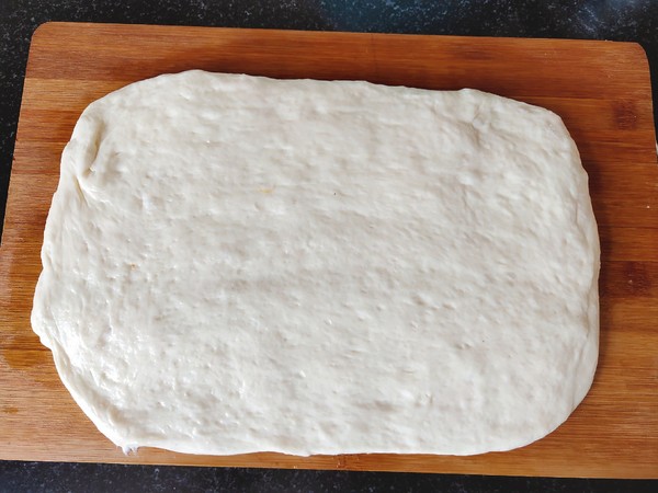 5.輕拍面團(tuán)按扁,搟成長薄餅狀。