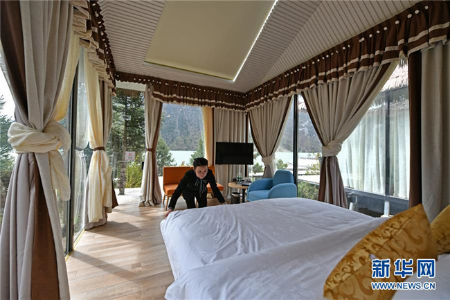 然烏國際自駕·房車露營營地是西藏昌都市八宿縣招商引資的旅游產(chǎn)業(yè)扶貧項目,2018年3月正式營業(yè)。目前,營地內(nèi)設(shè)觀景臺、餐廳、咖啡廳、酒吧、超市、房車基地、帳篷營地,擁有觀景房8套、星空房78套、集裝箱房22套、各類車位近200個,計劃帶動幫扶60戶本地貧困群眾增收致富。 新華社記者 李鑫 攝