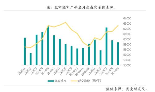 北京鏈家二手房月度成交量?jī)r(jià)走勢(shì)。來(lái)源:貝殼研究院