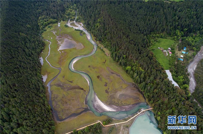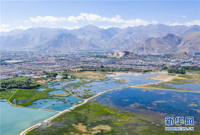 被譽(yù)為“拉薩之肺”的拉魯濕地(6月5日無人機(jī)拍攝)。新華社記者 普布扎西 攝