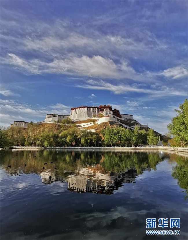 藍(lán)天白云下的布達(dá)拉宮(4月30日攝)。新華社記者 張汝鋒 攝
