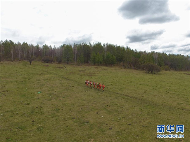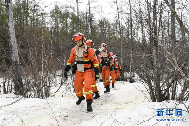 奇乾中隊消防隊員在戶外進行綜合訓(xùn)練時經(jīng)過一片暫未消融的冰雪(5月19日攝)。新華社記者 劉磊 攝