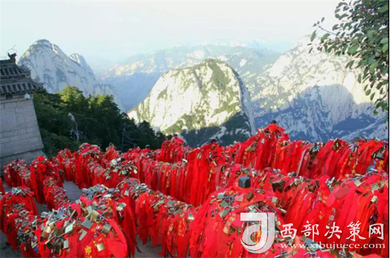 在華山,最美好的是在金鎖關,將你我的名字用一把連心鎖鐫刻在一起,這樣我中有你,你中有我。