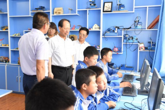 石泰峰十分關(guān)心農(nóng)村學(xué)校運(yùn)用“互聯(lián)網(wǎng)+”破解師資力量和優(yōu)質(zhì)教育資源短缺問(wèn)題。在西夏區(qū)鎮(zhèn)北堡鎮(zhèn)華西中學(xué)和賀蘭縣洪廣鎮(zhèn)金山小學(xué),石泰峰走進(jìn)科普活動(dòng)室、錄播室和教師辦公室,了解視頻遠(yuǎn)程教學(xué)和在線(xiàn)互動(dòng)課堂開(kāi)展情況。他說(shuō),“互聯(lián)網(wǎng)+教育”是促進(jìn)教育公平的有效手段,要通過(guò)互聯(lián)網(wǎng)技術(shù),一方面把區(qū)內(nèi)優(yōu)質(zhì)教育資源輸送到偏遠(yuǎn)地區(qū)、農(nóng)村學(xué)校,一方面引進(jìn)發(fā)達(dá)地區(qū)先進(jìn)教育理念、教學(xué)技術(shù)、數(shù)字資源為我所用,提升教育教學(xué)水平。