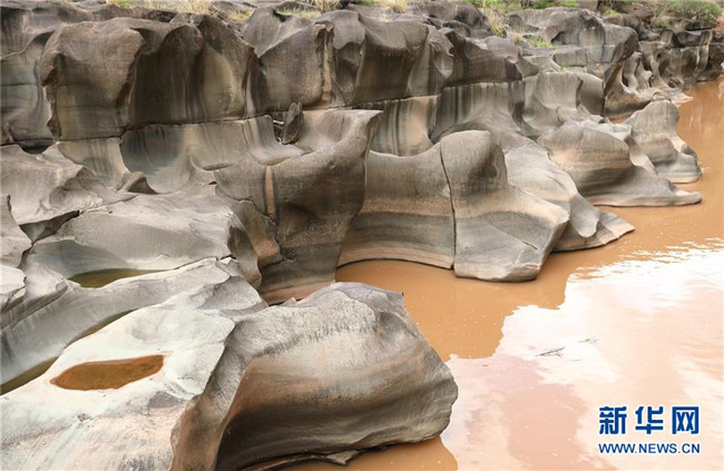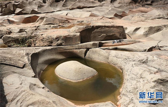 這是6月16日拍攝的四川省會(huì)東縣鲹魚(yú)河鐵柳鎮(zhèn)火石村段的壺穴地貌。新華社記者江宏景攝