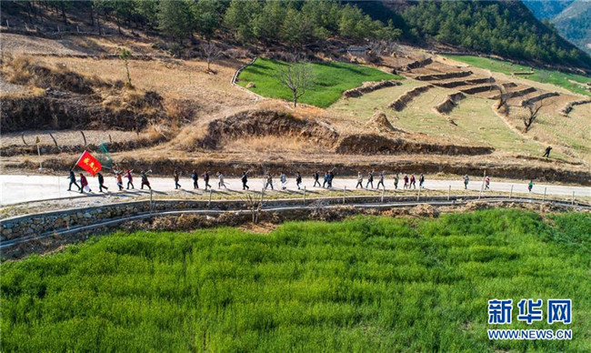 “精準扶貧感恩連”在云南香格里拉市五境鄉(xiāng)開展植樹活動(3月13日無人機拍攝)。新華社記者 胡超 攝