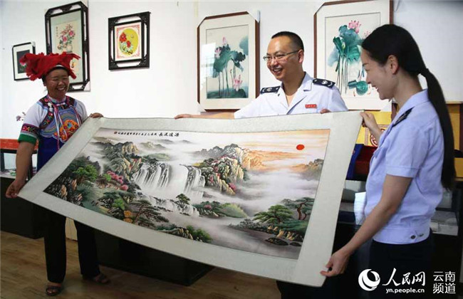 沉下心來學(xué)習(xí)刺繡的王陸芬朝著自己的小目標(biāo)努力。白天,她向村里的老人們學(xué)習(xí)刺繡技法,學(xué)習(xí)構(gòu)圖、畫圖,晚上就在家里刻苦練習(xí)。一有機(jī)會,王陸芬就出去考察學(xué)習(xí)。“有一年去上海考察,看到他們的刺繡還沒有我做的精細(xì),沒想到價格還很貴。”這讓王陸芬堅(jiān)定了自己的想法,在王陸芬的帶動下,白沙坡村成立了刺繡協(xié)會,協(xié)會一開始只有26人。2014年2月,技藝日臻成熟的王陸芬成立了“紙藝刺繡農(nóng)民專業(yè)合作社”,2015年成立硯山縣華韻手工刺繡有限公司。