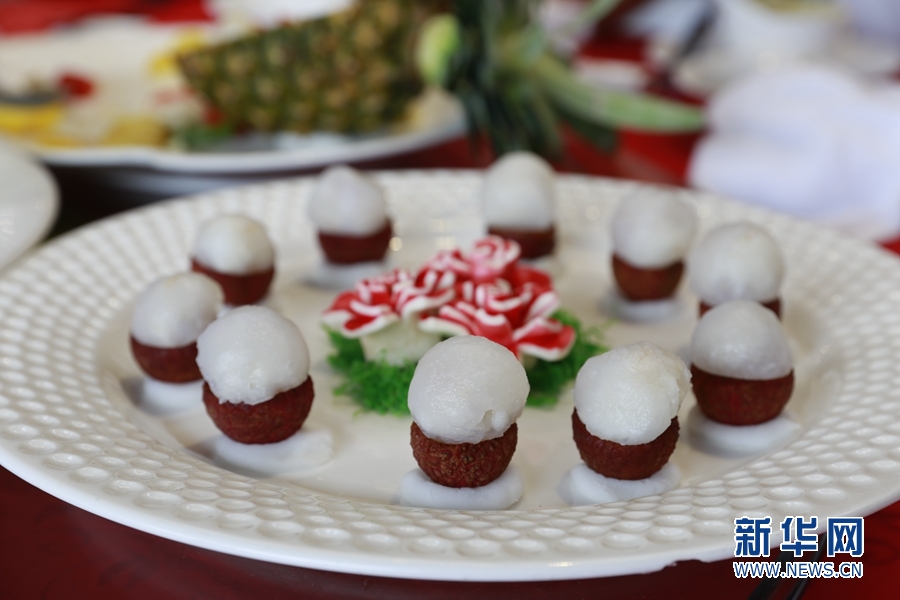 點心師傅用荔枝在創(chuàng)作菜肴。新華網(wǎng) 林曉蕾攝