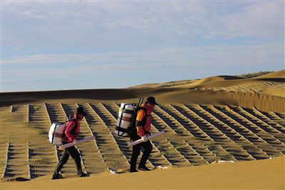 “在干旱、半干旱地區(qū)促進天然植被恢復和提高人工植被成活率,首要條件是維持沙地表面的相對穩(wěn)定,因而設置沙障成為許多地區(qū)植樹造林工作的前提和關鍵。”內(nèi)蒙古農(nóng)業(yè)大學沙漠治理學院高永教授告訴記者。