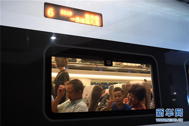 7月11日,一位小朋友在G319次列車上向窗外揮手。當(dāng)日,重慶至香港直達高鐵正式開通,此次首發(fā)的G319次復(fù)興號列車運行速度350km/h,沿途經(jīng)停遵義、貴陽東、桂林西、肇慶東、廣州南和深圳北站。列車由重慶西站至香港西九龍站全程運行需7小時37分鐘,全程票二等座票價為660元。目前內(nèi)地與香港聯(lián)通的高鐵車站已增加到58個。新華社記者唐奕攝