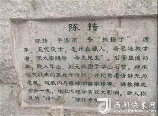 陳摶:陳摶(872年—989年),字“圖南”,號“扶搖子”、“希夷先生”(“希”指視而不見,“夷”指聽而不聞),常被視為神仙,尊稱為陳摶老祖、希夷祖師等。主張以睡眠,休養(yǎng)生息,時常一眠數(shù)日,人稱睡仙。相傳紫微斗數(shù)及無極圖說皆為陳摶之創(chuàng)作。五代末,宋朝初期亳州真源(今河南鹿邑)人,著名華山派道士。