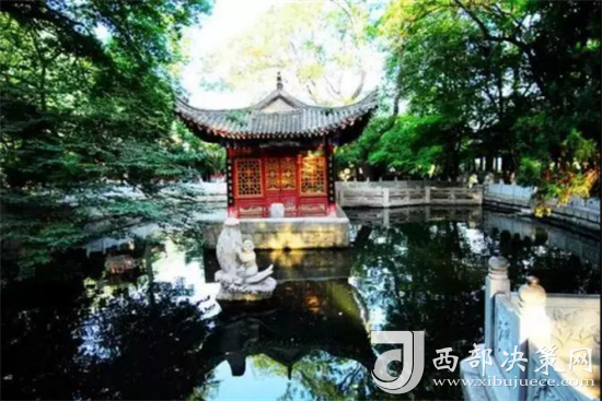康有為曾寫詩贊美道:“谷口清泉引曲流,長廊迴醫(yī)樹無憂。泉水岳色可忘出,讓與希夷睡萬秋。”