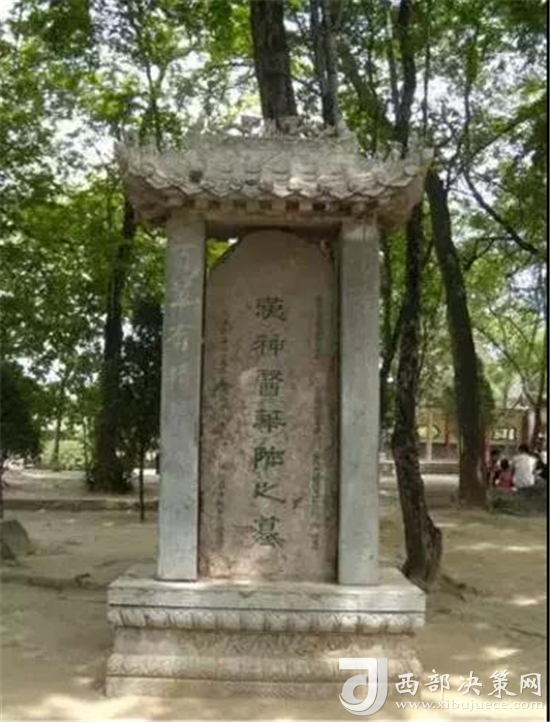 神醫(yī)華佗墓,在石舫東邊的巨石旁,有一《漢神醫(yī)華陀墓》碑。華陀死后并沒葬于此,但為什么有墓碑呢?據(jù)《后漢書•華陀傳》記載:當年華陀有一好友名魯先生隱居在華山白麓龕,華陀常來華山探友,且常留住這里,和魯先生一起作五禽游戲,一起采藥、制藥濟世。他在平時總愛穿戴魯先生的道袍方巾,腰系一個大藥葫蘆,下山為百姓診治疾病。被曹操殺害后,冤魂直來華山,向好友訴屈。魯先生驚覺,即下山探詢,獲得確實噩耗后,魯先生把華陀衣物用具在紅巖村西修了一座衣冠冢,并且嚎啕痛哭送葬?,F(xiàn)墓已無存,也不知何時何人將墓碑移至玉泉院內(nèi)。