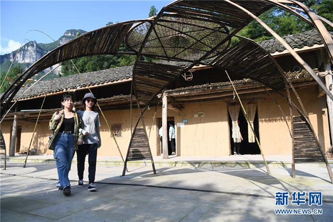 7月27日,在重慶武隆仙女山懶壩景區(qū),游客在“竹音劇院”內(nèi)游玩。新華社記者 唐奕 攝