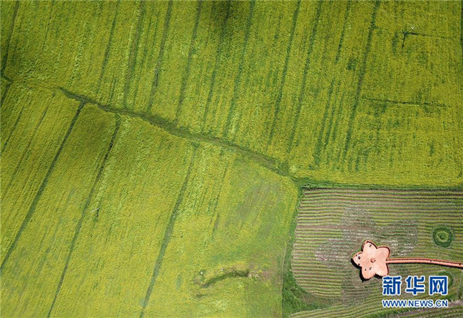7月29日在碌曲縣拍攝的油菜花田(無人機(jī)拍攝)。 新華社記者 馬寧 攝