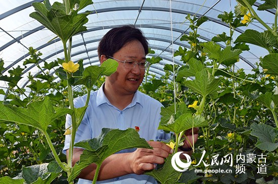 張驊在大棚里查看作物長勢