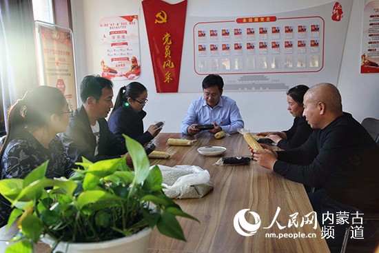 張驊帶領(lǐng)駐村工作隊和村兩委研究黑糯玉米銷售策略。