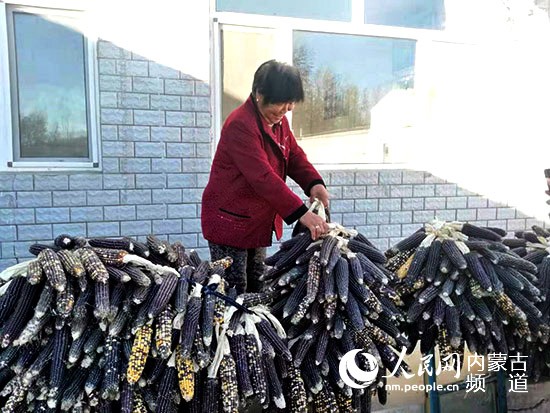農(nóng)戶看著豐收的黑玉米笑得合不攏嘴。