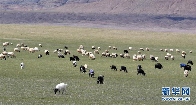 8月4日拍攝的尼瑪縣草原上的羊群。西藏那曲市尼瑪縣位于西藏西北部,位于羌塘國家級自然保護區(qū)內(nèi),是古老象雄文明的發(fā)祥地之一。這里空氣潔凈,野生動物繁多,深受游客喜愛。新華社記者覺果攝