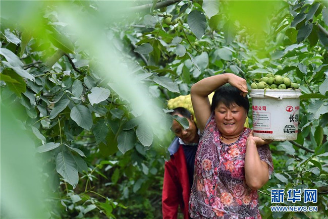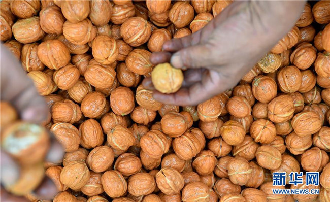 近年來,河北省石家莊市贊皇縣依托山地生態(tài)優(yōu)勢,因地制宜,引導(dǎo)農(nóng)戶種植核桃等經(jīng)濟(jì)作物,發(fā)展特色農(nóng)業(yè),助力農(nóng)民脫貧增收。據(jù)了解,目前贊皇縣核桃種植面積已達(dá)40余萬畝,遍及全縣11個(gè)鄉(xiāng)鎮(zhèn)150多個(gè)村。 新華社記者 駱學(xué)峰 攝