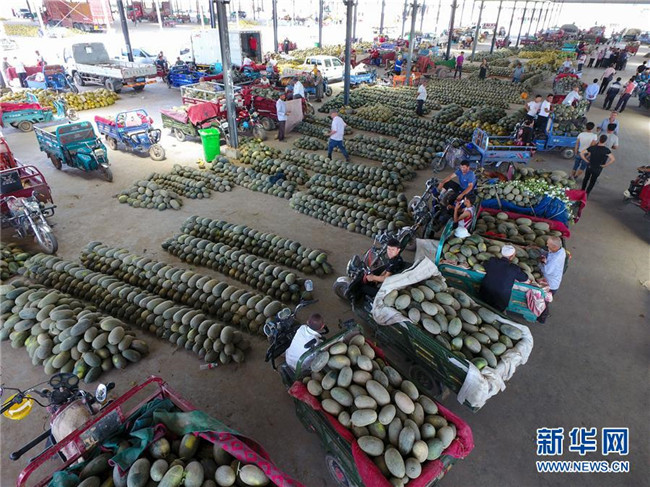 夏秋之交,正是新疆瓜果飄香的時節(jié)。近日,喀什地區(qū)伽師縣20余萬畝伽師瓜大量上市。在瓜田里,瓜農(nóng)們忙著采摘伽師瓜;在批發(fā)交易市場,到處可見包裝、搬運(yùn)伽師瓜的瓜農(nóng)和客商,一派繁忙的景象。