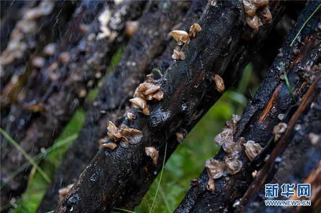8月10日拍攝的四川壤塘縣下大石溝村種植出的青杠木耳。新華社記者 張超群 攝