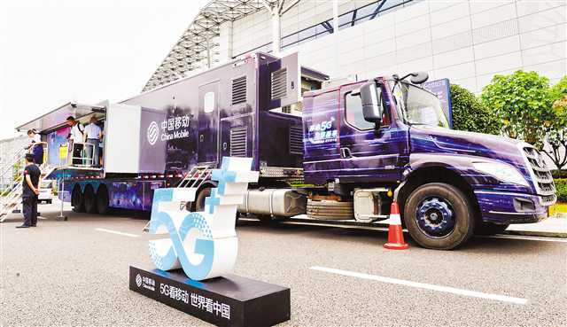8月14日,在重慶國際博覽中心,重慶移動“5G巡洋艦”停靠在此。這是全市首輛大型5G應用開放體驗展示車,市民可零距離感受5G在教育、旅游、工業(yè)、娛樂領域的廣泛應用。