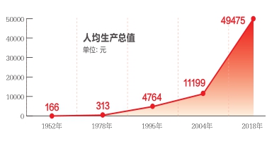 新中國成立以來,伴隨著新疆經(jīng)濟(jì)社會(huì)的快速發(fā)展,人均生產(chǎn)總值由1952年的166元到1987年邁上了1000元的平臺(tái),2004年突破10000元大關(guān),標(biāo)志著新疆經(jīng)濟(jì)進(jìn)入了一個(gè)新的歷史階段。2018年攀升到49475元,成功由低收入地區(qū)跨入中等收入地區(qū)行列。(張永)