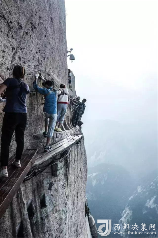 長空棧道位于華山南峰東側(cè)山腰,是華山派第一代宗師元代高道賀志真為遠(yuǎn)離塵世靜修成仙,在萬仞絕壁上鑲嵌石釘搭木椽而筑。長空棧道的盡頭便是思過崖。