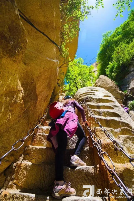 “自古華山一條路”就是當(dāng)?shù)厝怂f的“華山峪”登山道,包括了自古以來華山唯一登山道上的沿途各景點(diǎn),連起來就是通常所說的“自古華山一條路”。登華山最大的樂趣即為登山本身,一邊克服種種山路的艱險(xiǎn),一邊移步換景觀賞沿途風(fēng)光,所以這條經(jīng)典的登山路線至今仍然是登華山的最佳選擇。