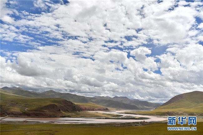 青海省玉樹(shù)藏族自治州治多縣被稱為長(zhǎng)江源頭第一縣,這是長(zhǎng)江源頭通天河在該縣的一處轉(zhuǎn)彎(9月12日攝)。新華社記者孫瑞博攝