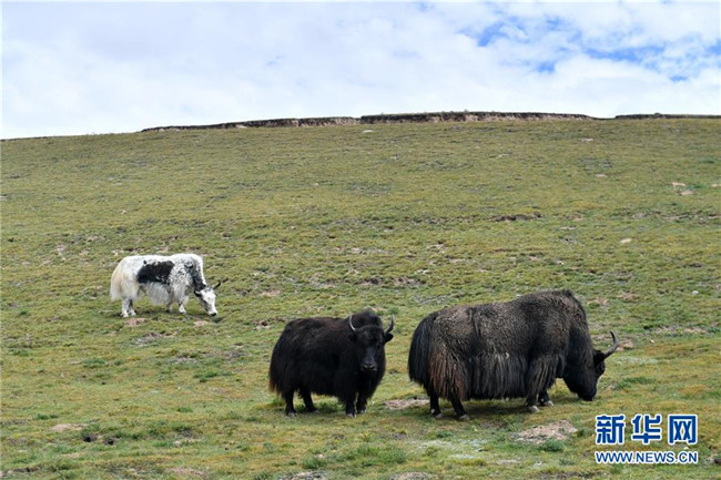 這是在青海省玉樹(shù)藏族自治州治多縣治渠鄉(xiāng)同卡村拍攝的牧民合作社草場(chǎng)上的牦牛(9月12日攝)。新華社記者孫瑞博攝