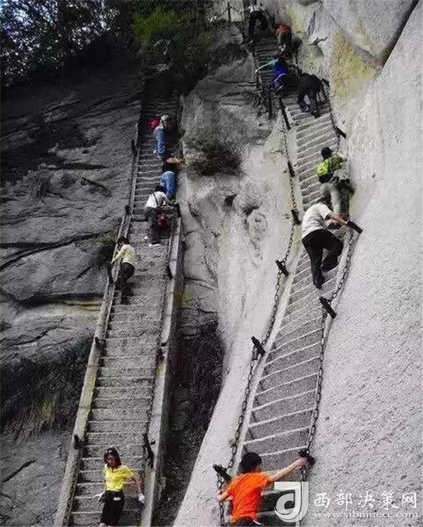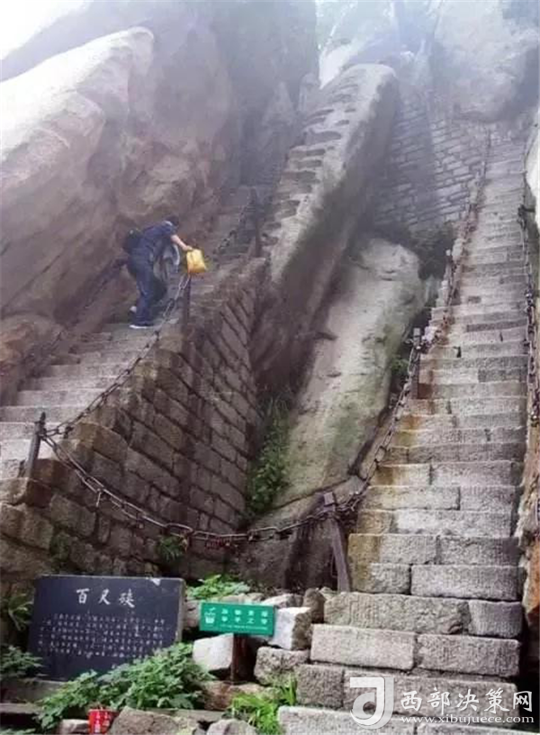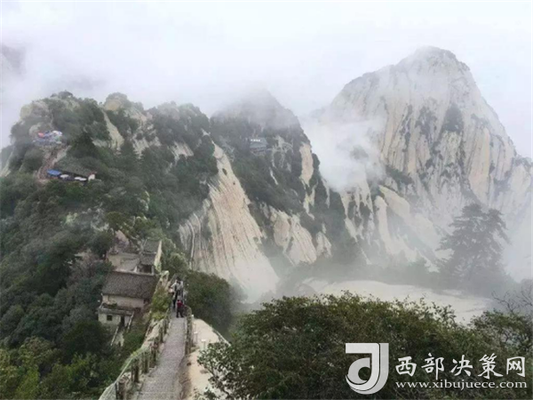 眾所周知,華山在五岳之中以“險(xiǎn)峻”著稱(chēng)。素有“奇險(xiǎn)天下第一山”之譽(yù),華山的主體是由一塊完整碩大的花崗巖體構(gòu)成的,挺拔地屹立在渭河平原。東、南、西三峰拔地而起,如利刃削就。由于華山太險(xiǎn),所以唐代以前很少有人登臨,歷代君王祭祀西岳,也只是在山下西岳廟中舉行大典。據(jù)記載,直到魏晉南北朝時(shí)期,還沒(méi)有通向華山峰頂?shù)牡缆?。唐代才逐漸在北坡沿溪谷而上開(kāi)鑿了一條險(xiǎn)道,也從此有了“自古華山一條路”的說(shuō)法。