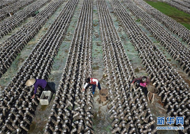 農(nóng)民在貴州省銅仁市萬山區(qū)敖寨鄉(xiāng)中華山村的食用菌基地里采摘木耳(2018年10月29日無人機拍攝)。 近年來,貴州省圍繞產(chǎn)業(yè)選擇、培訓(xùn)農(nóng)民、技術(shù)服務(wù)、資金籌措、組織方式、產(chǎn)銷對接、利益聯(lián)結(jié)、基層黨建等“八要素”,通過“減、融、服”創(chuàng)新推進農(nóng)村產(chǎn)業(yè)結(jié)構(gòu)調(diào)整,既帶動了農(nóng)戶增收,也推動了特色產(chǎn)業(yè)做大做強。 新華社記者 楊文斌 攝