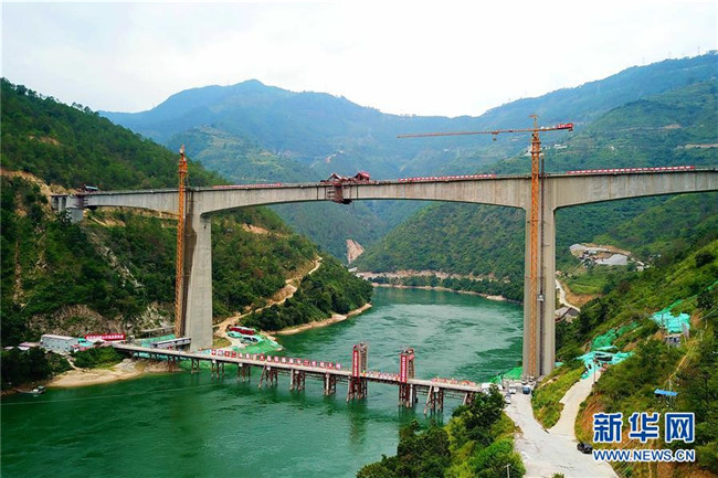 當(dāng)日,由中鐵十二局集團(tuán)公司承建的中緬國際通道大(理)臨(滄)鐵路瀾滄江雙線大橋順利合龍。該橋位于云南省大理州南澗縣,是目前世界上在建的高地震烈度區(qū)最大跨度鐵路雙線連續(xù)剛構(gòu)橋,全長431.6米。