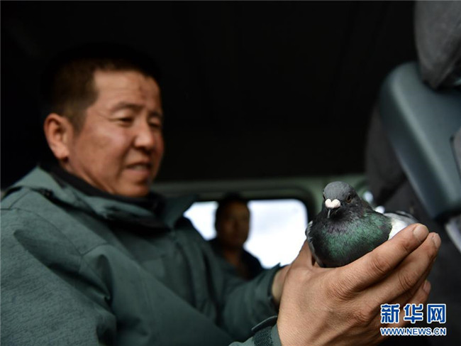 9月24日,青海湖國家級自然保護區(qū)管理局的巡湖觀測人員王延明在巡湖期間救治一只鴿子。